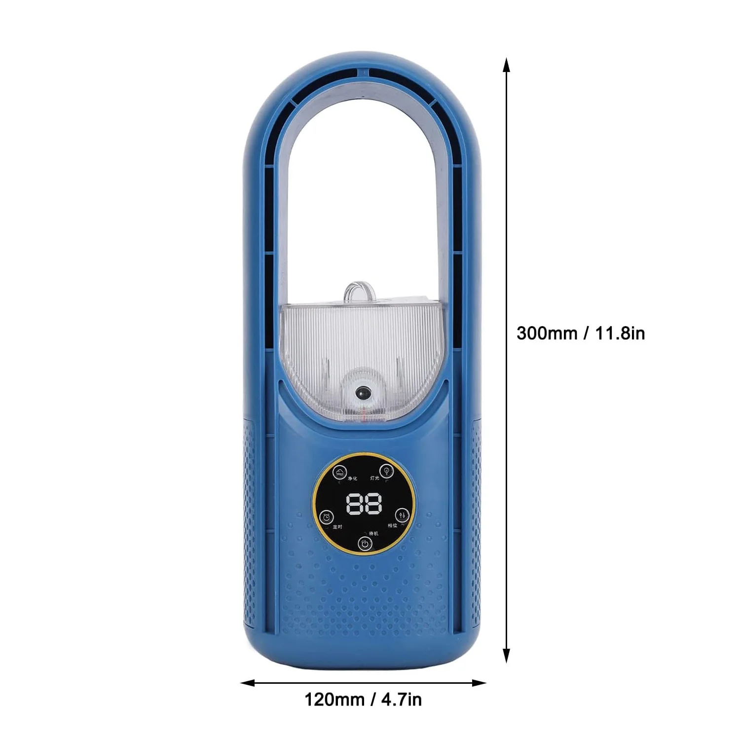Compact and lightweight (11.8 × 4.7 in). Perfect for desks, bedside tables, camping, and travel. Bladeless technology makes it child‑safe. -